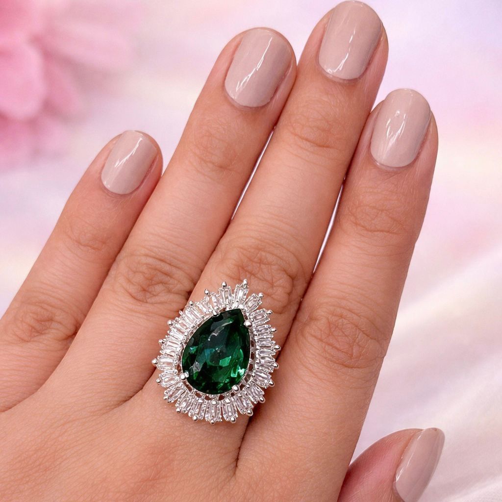 Rhodium Plated American Diamond finger Ring for girls and woman.