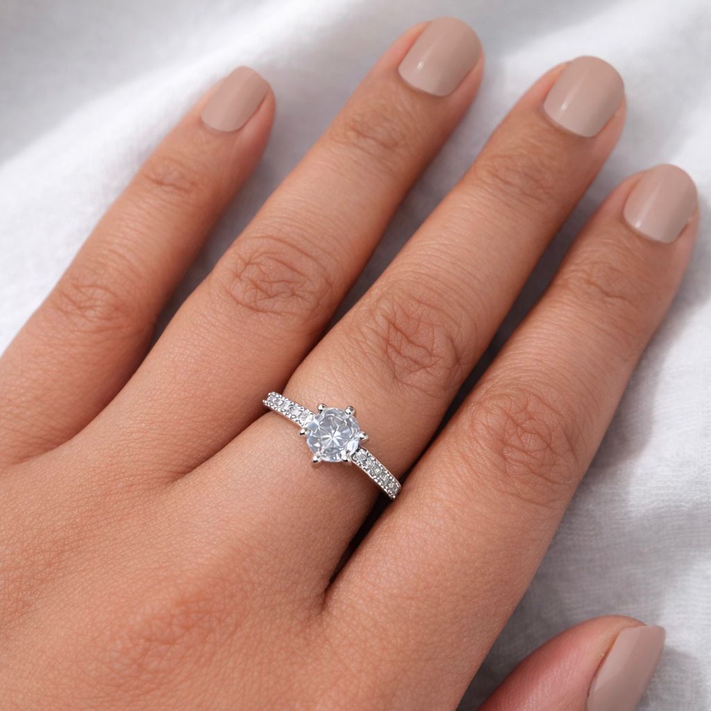 Solitaire Engagement Ring for Women. American Diamond Ring. Royal luxury Cocktail Ring in Silver. Stylish Partywear Ring. Round Cut Diamond Ring.
